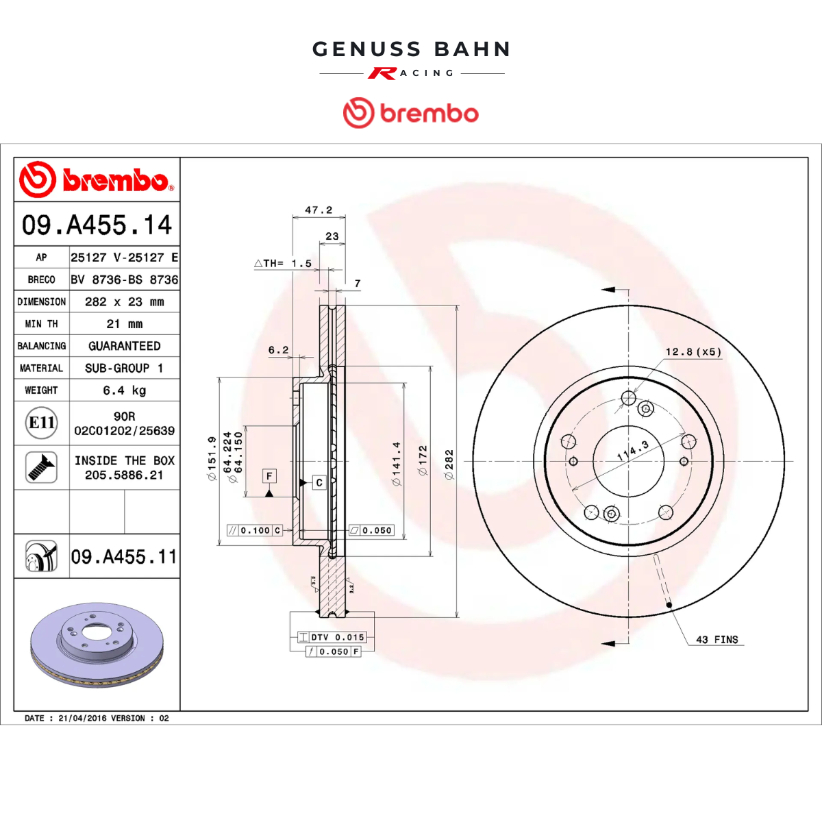 The 09.A455.11 painted brake disc is synonymous with reliability