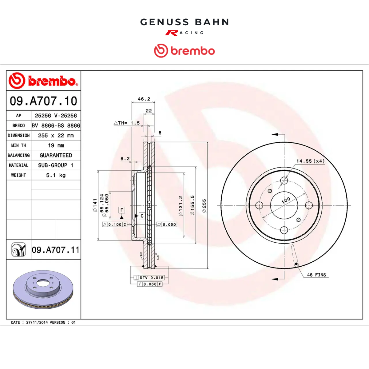 The 09.A707.11 painted brake disc is synonymous with reliability