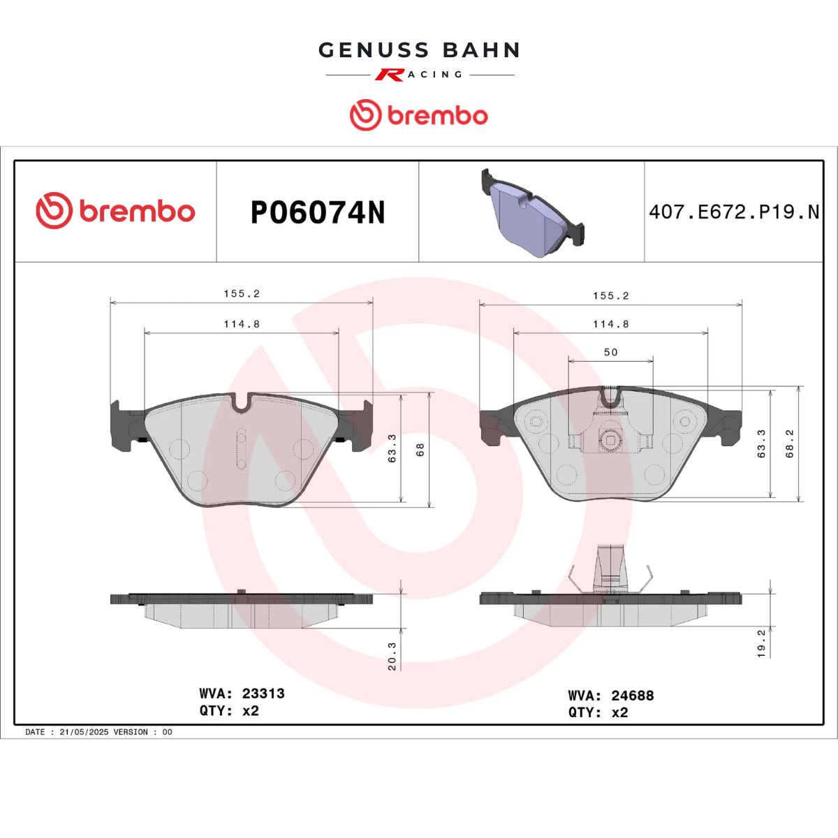 P06074N Prime Ceramic brake pad belongs to Brembo Premium Line