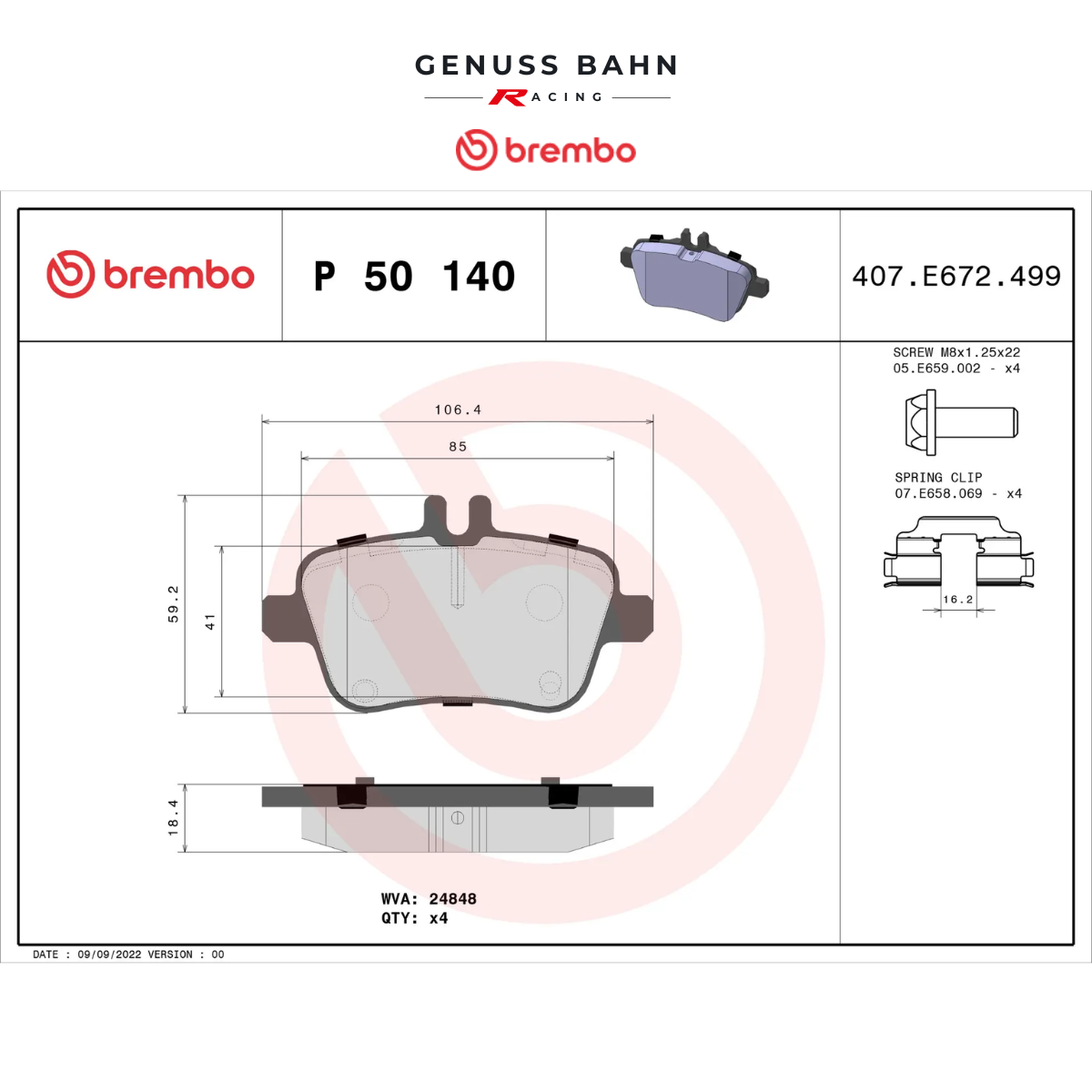 P 50 140 Prime brake pad belongs to Brembo Premium Line