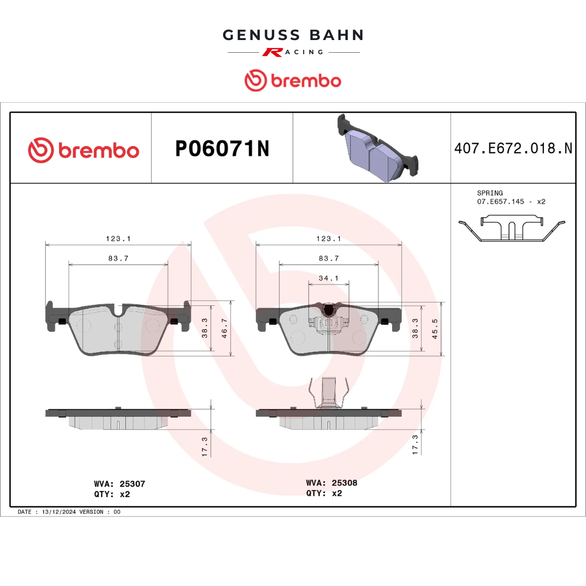 P06071N Prime Ceramic brake pad belongs to Brembo Premium Line