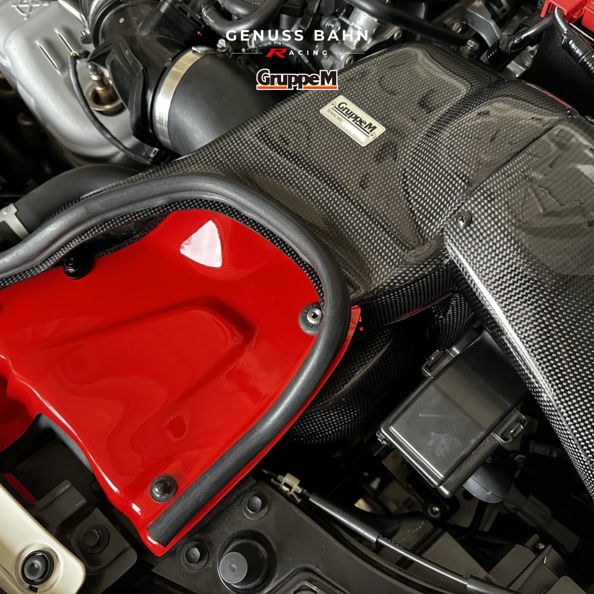 The specially designed carbon duct has a shape that completely blocks out hot air in the engine compartment. The air intake guide on the front grill introduces fresh air directly to lower and stabilize the intake air temperature. Achieves increased torque and power across the entire range from low rotation to high rotation. You can also enjoy the sporty intake sound. Installation is bolt-on using a special fitting adapter.