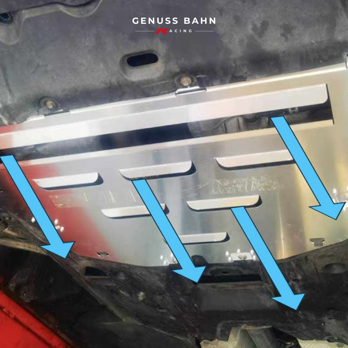 ✅ The high-grade 2mm thick aluminum cooling plate is stronger than the flimsy 0.5mm OE undertray, thus more effective at protecting the engine and transmission from road and track debris, and from incurring damage itself
