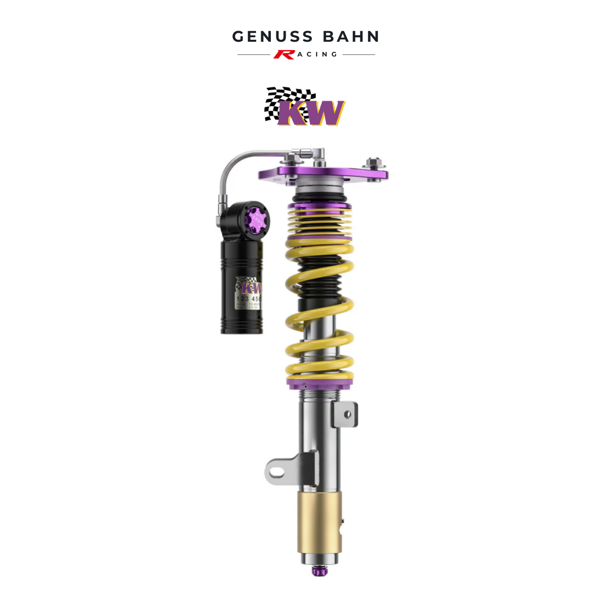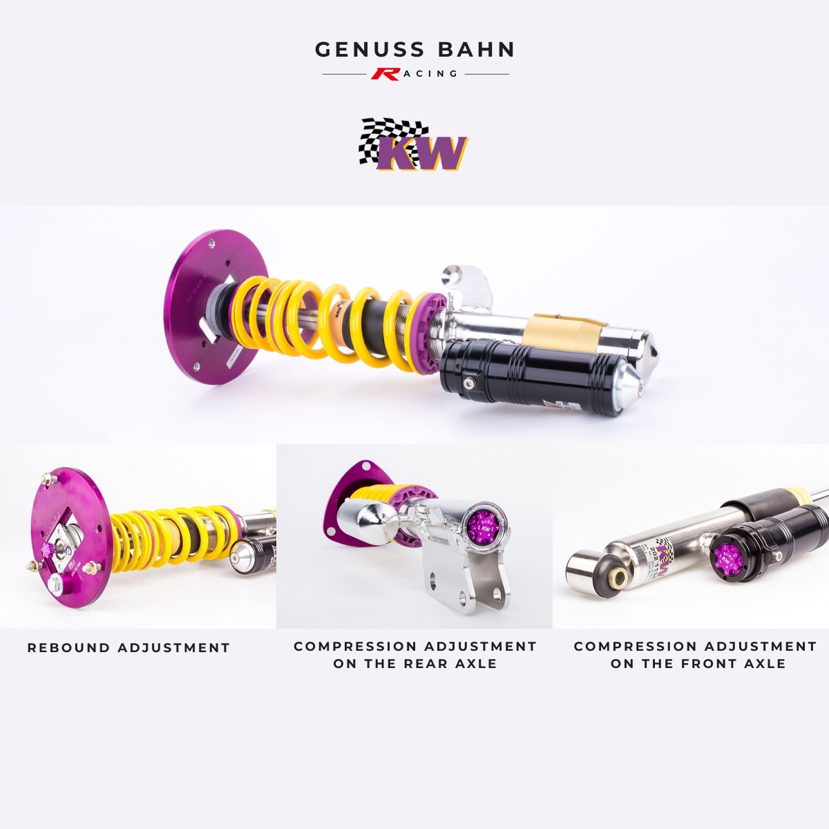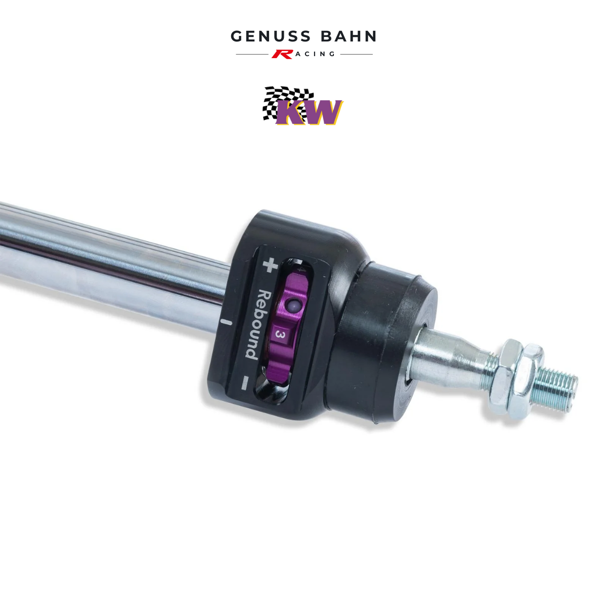 The rebound adjuster knob provides 16 precise clicks to personally dial in your desired vehicle setup. Thus allowing you the possibility to influence wheel/tire loads or take into concern chassis characteristics. Independent from rebound adjustment is the compression dampening, 12 precise adjustment clicks are provided to adjust the low-speed dampening. Most notably used to dial in wheel/tire setup.