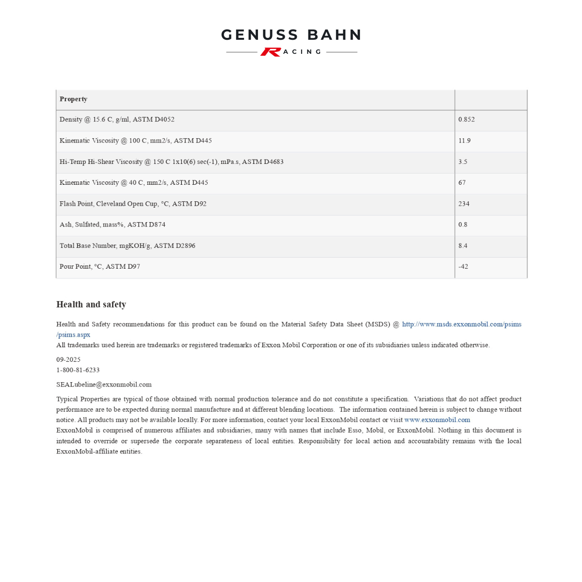 • Mobil 1™ ESP 5W-30 is not recommended for 2-Cycle or aviation engines, unless specifically approved by the manufacturer. Owner’s manual should be consulted for recommended viscosity grade and specification.